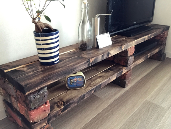 - 棚・ラック・シェルフ > 木製ラック・ウッドラック > オーダーハンドメイド ブルックリン調レール棚付きテレビボード ブルックリン調 テレビボード 高級レンガ使用 テレビ台・テレビボード