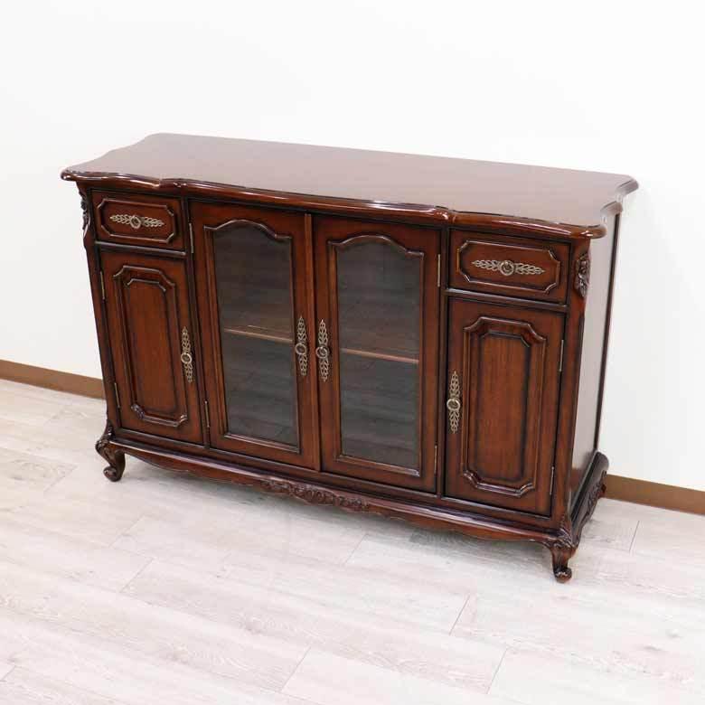 - リビング収納 > キャビネット・サイドボード > mochikana アンティーク調 木製キャビネット サイドボード サイドボード ローキャビネット マホガニー 猫脚 完成品 木製 茶