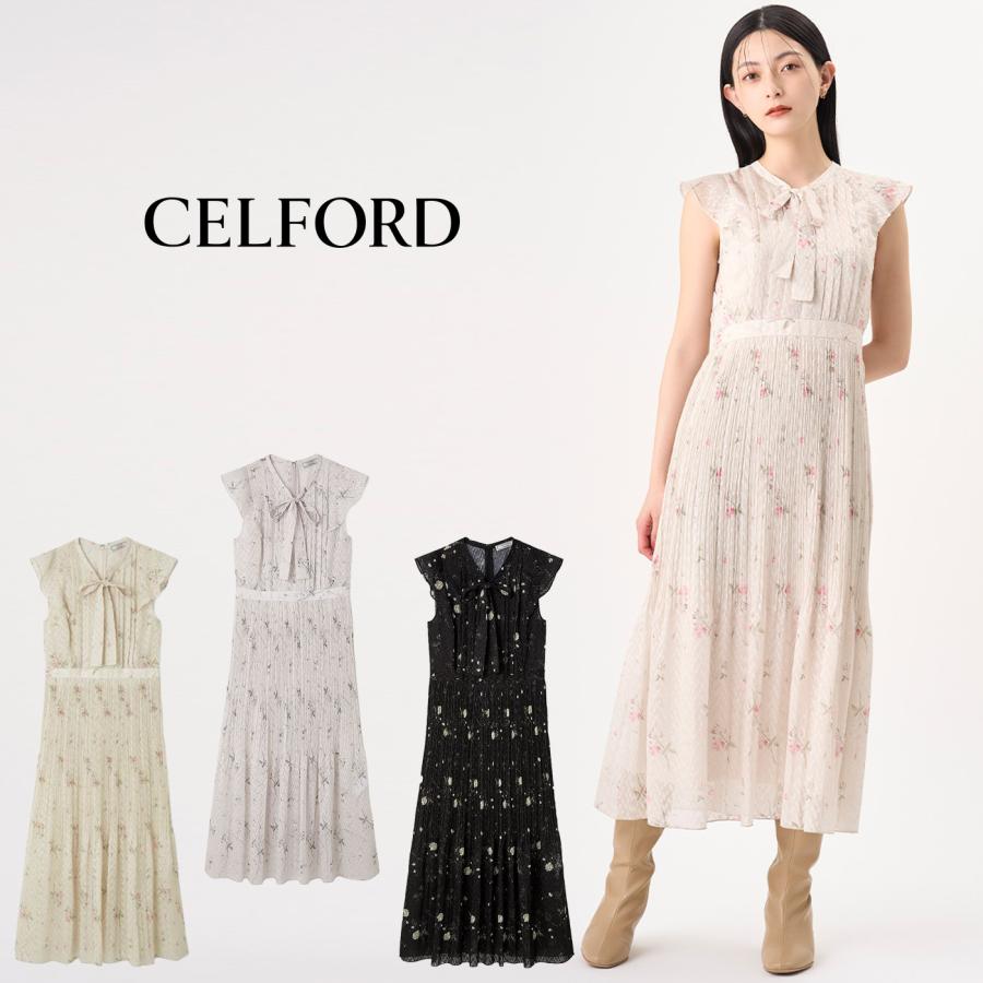 | メーカー | タグ付き新品 セルフォード 花柄 シースルー ボウタイ ロングワンピース 36 CELFORD(セルフォード) |