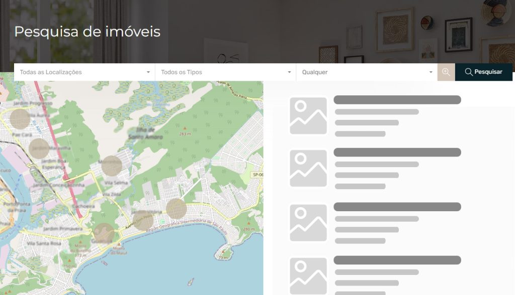 Os anúncios poderão exibir fotos, vídeos e mapas. Sistema de busca por preço, região, bairro e tipo de imóvel, quantidade de cômodos, banheiros, metragem e demais preferências ajudarão o cliente a filtrar os imóveis de acordo com seus interesses.
